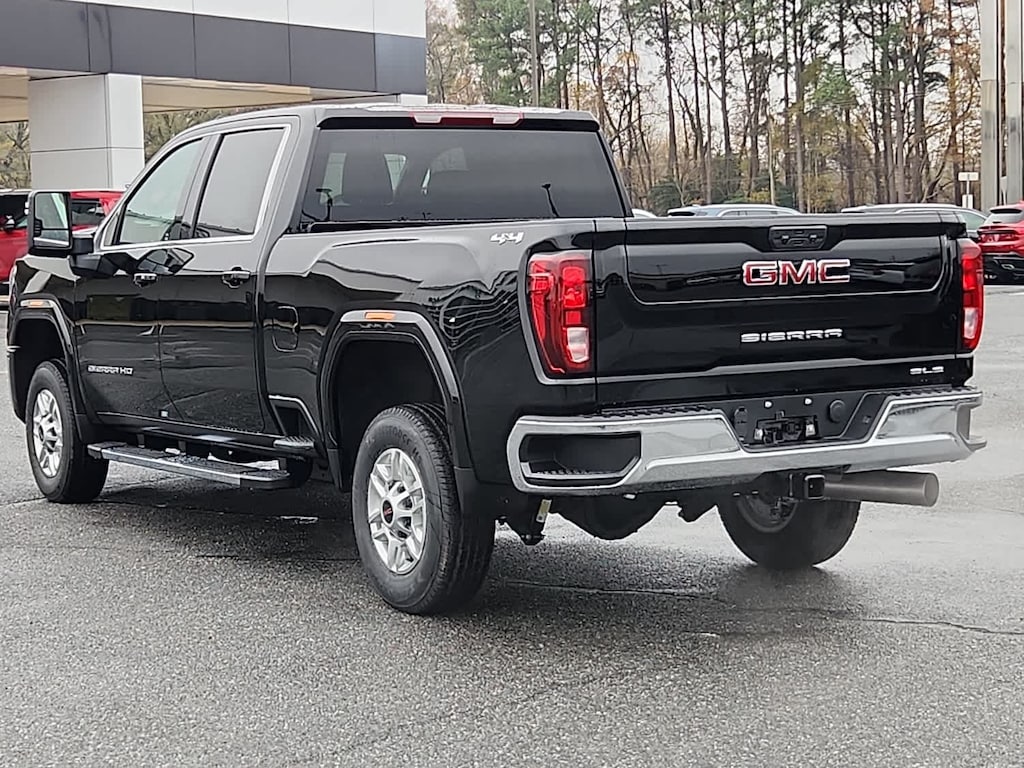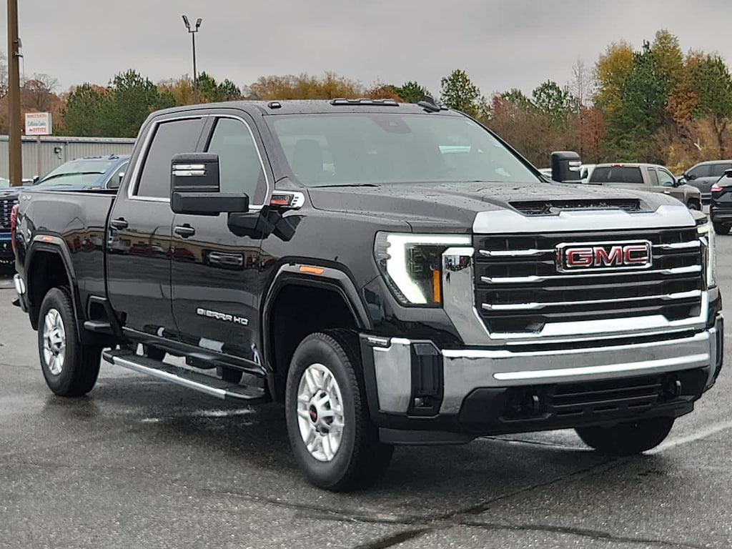 ENGINE, DURAMAX 6.6L TURBO-DIESEL V8, B20-DIESEL COMPATIBLE: (470 hp [350.5 kW] @ 2800 rpm, 975 lb-ft of torque [1322 Nm] @ 1600 rpm) (Includes (K05) engine block heater.), SLE VALUE PACKAGE;: includes (PCQ) SLE Convenience package, (CGN) spray-on bedliner, (ZM9) SLE Heated package and (B59) Remote Start Package, GOOSENECK / 5TH WHEEL PREP PACKAGE -- HITCH PLATFORM TO ACCEPT GOOSENECK OR 5TH WHEEL HITCH.: Includes hitch platform with tray to accept ball, stamped bed holes with removable caps installed and bed mounted 7-pin trailer harness (similar to UY2 harness). (Includes (CGN) spray-on bedliner. LPO, BODY COLOR WHEEL ARCH MOLDINGS: (dealer-installed), LPO, ASSIST STEP AND FLOOR LINER PACKAGE: includes (RIA) All-weather floor liner, LPO and choice of assist step (VXH) 6" Chrome rectangular tubular assist step, LPO or (VXJ) 4" Chrome round tubular assist step, LPO on SLE, ONYX BLACK, TAILGATE, GMC MULTIPRO TAILGATE: with six functional load/access features NOTE: Auto release can be disabled if ball hitch is installed. See Owner's manual for details, LPO, GMC MULTIPRO TAILGATE STEP LIGHTS: (dealer-installed).